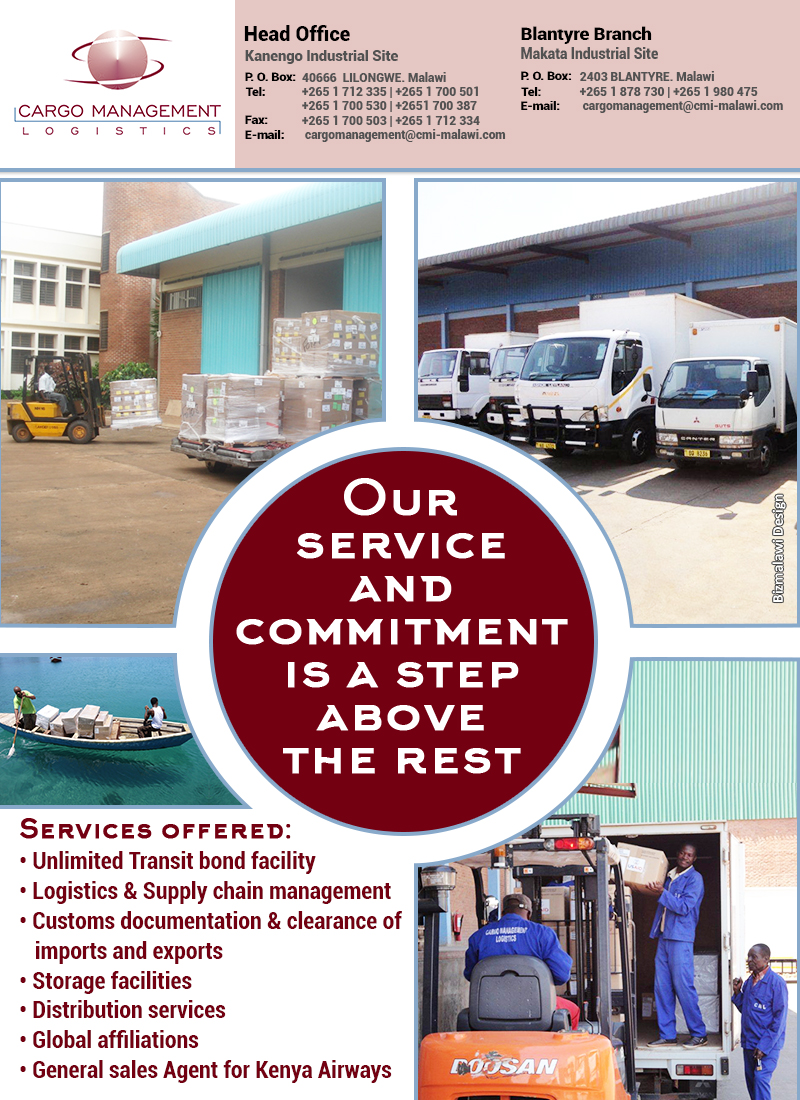 Cargo Management Logistics Ltd then called "Cargo Marketing International Ltd” was established in Malawi in 1989, and has its head office in Lilongwe. Over the years, we have grown to become an import and export freight handling, warehousing and local transport and distribution partner to many clients. We have branches across all major cities in Malawi including offices at all entry borders and airports. We have well trained and experienced members of staff who are directly involved in various supply management projects. Our track record, coupled by the vast experience and qualifications of our staff, confidently enables us to execute any logistics project professionally and efficiently.